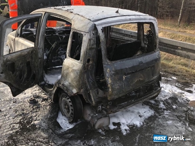 Pożar samochodu osobowego na autostradzie A1