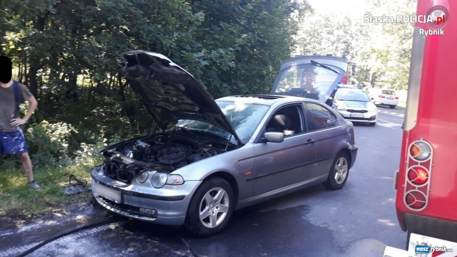 BMW stanęło w ogniu na Mikołowskiej