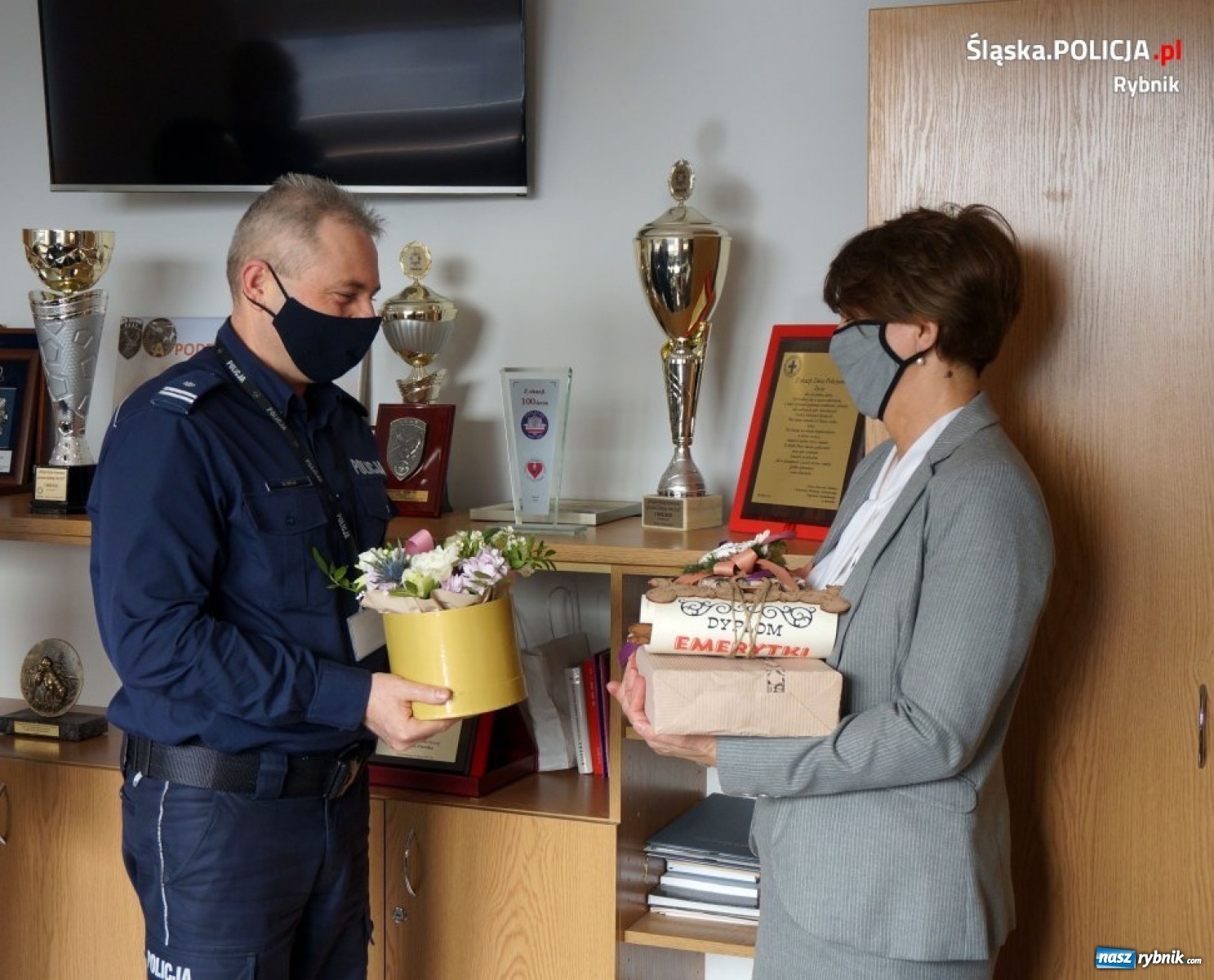 Pożegnanie pracowników korpusu służby cywilnej rybnickiej komendy