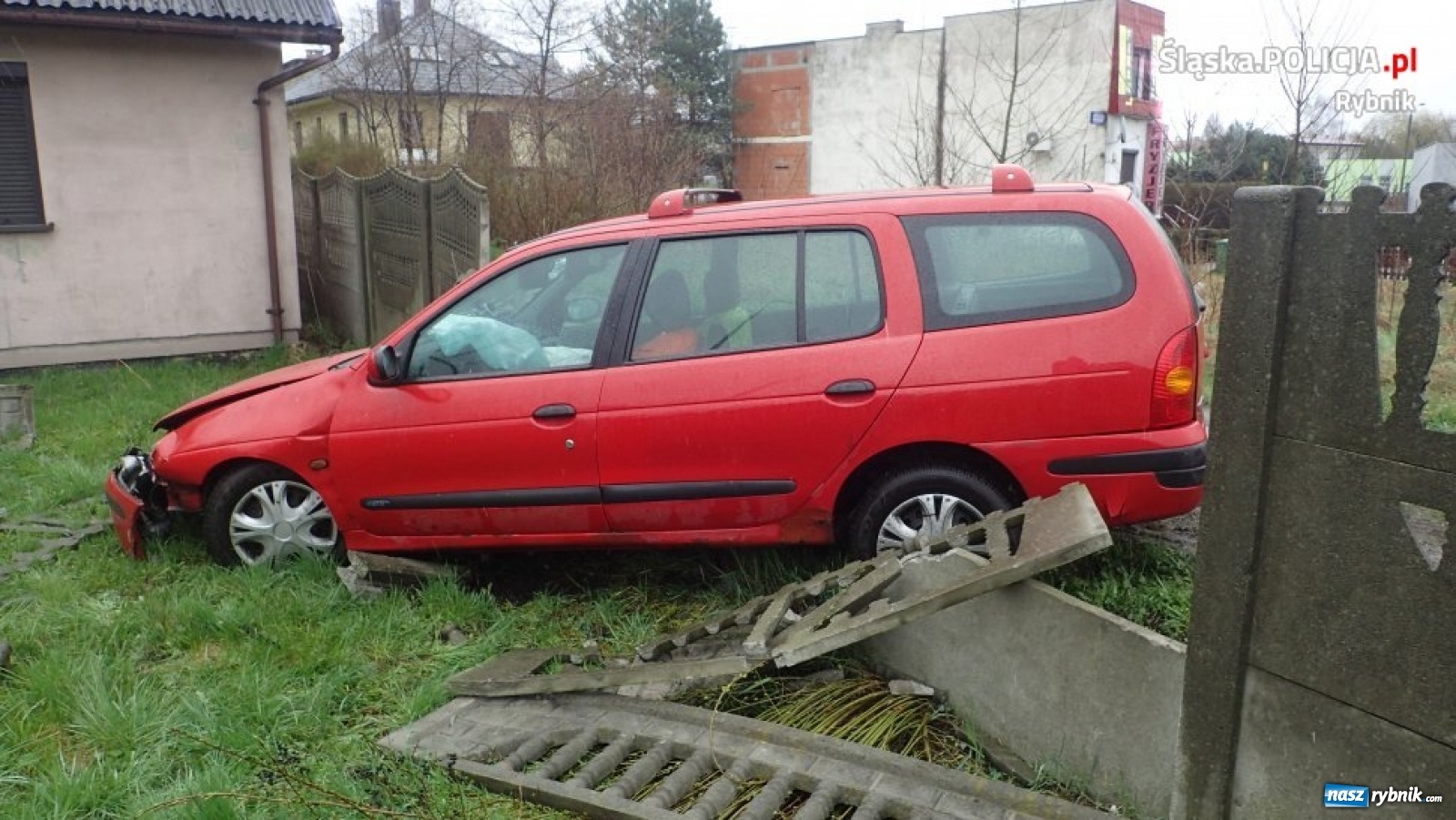 Renault wypadło z drogi i wjechało na posesję [FOTO]