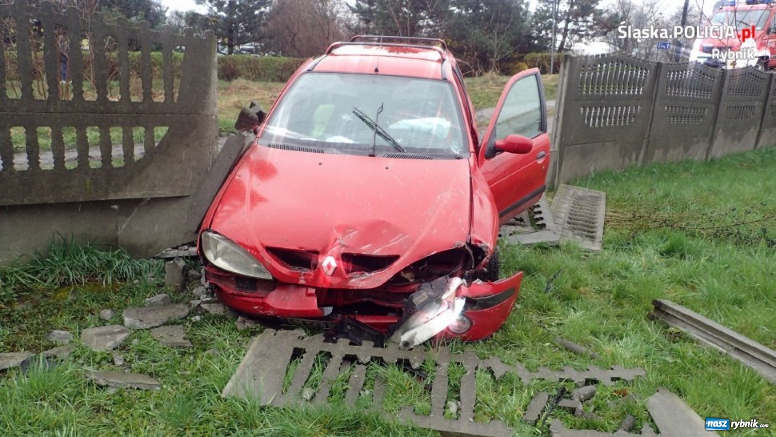 Renault wypadło z drogi i wjechało na posesję [FOTO]