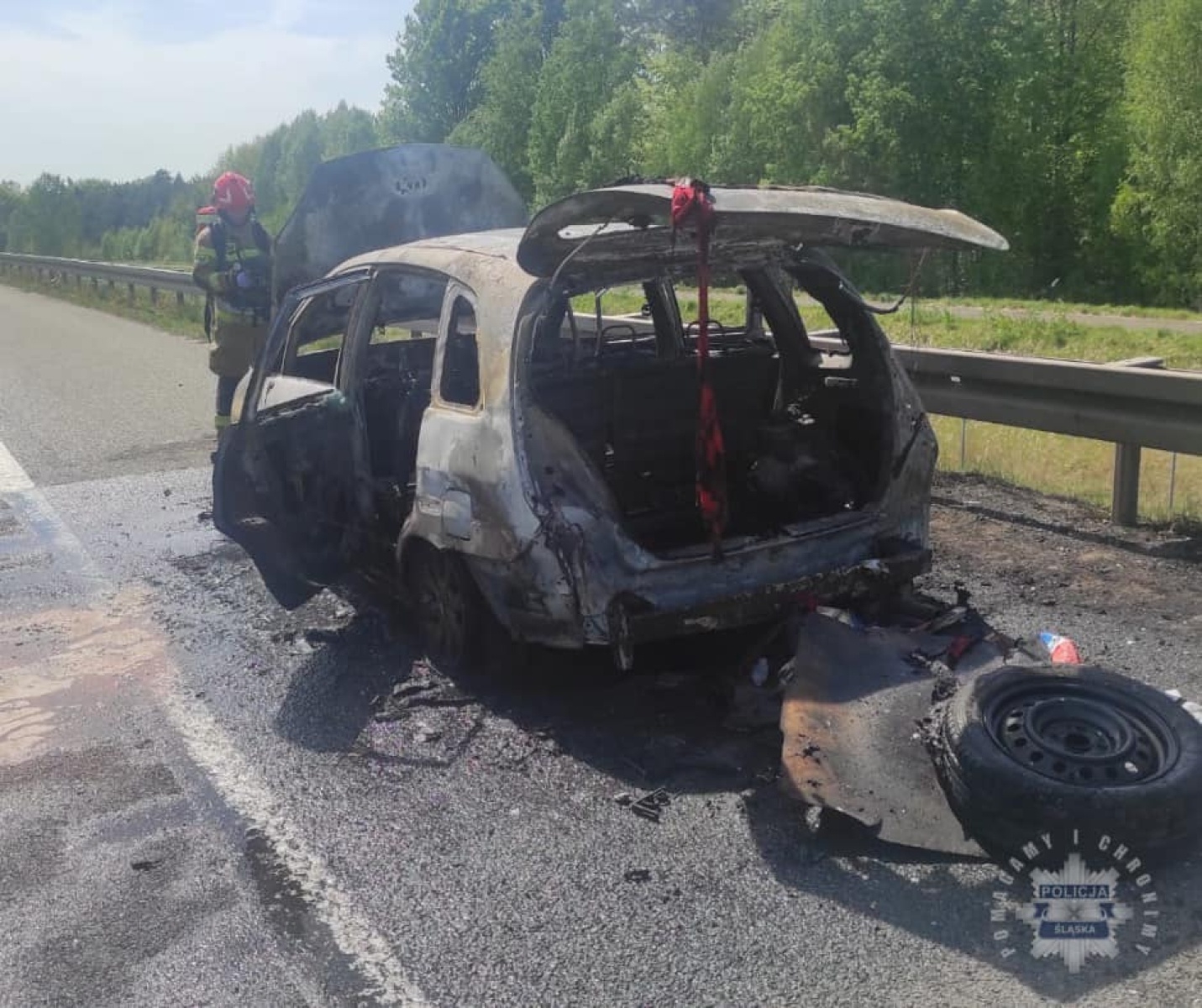 Kula ognia i słup dymu na A1. Osobowe suzuki spłonęło doszczętnie