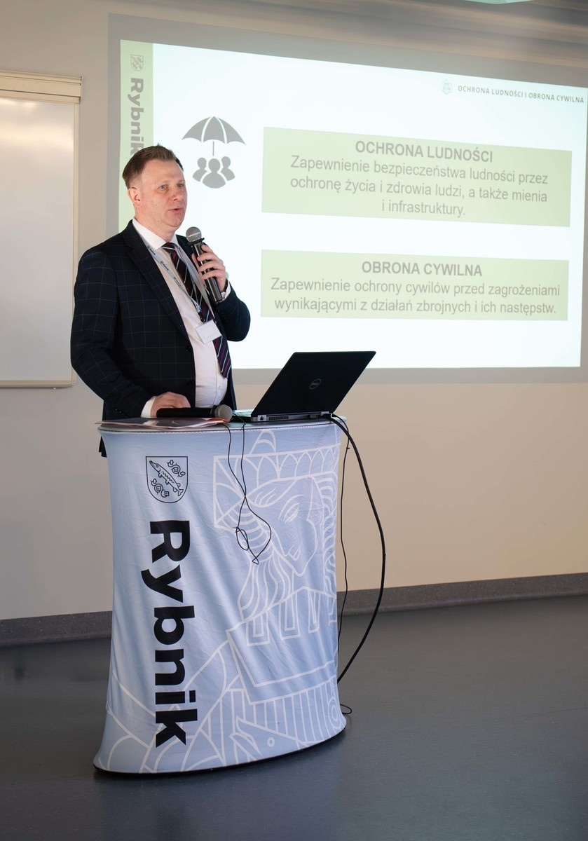 Kierownictwo rybnickiej komendy na spotkaniu poświęconym Ustawie o ochronie ludności i obronie cywilnej