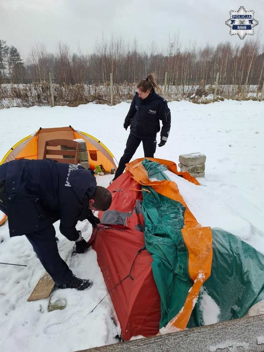Policjanci wraz ze streetworkerem sprawdzają bezpieczeństwo bezdomnych