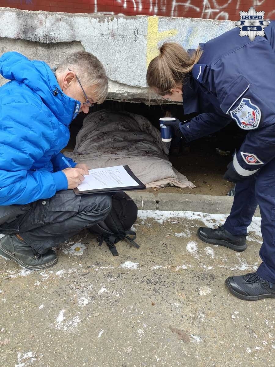 Policjanci wraz ze streetworkerem sprawdzają bezpieczeństwo bezdomnych