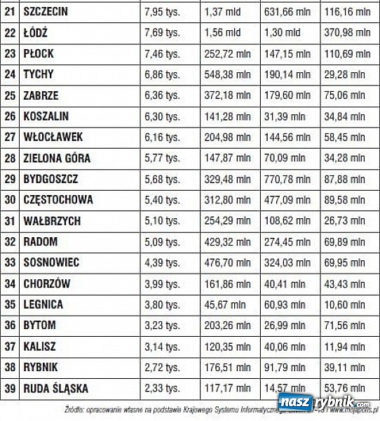 Rybnik przedostatni w rankingu
