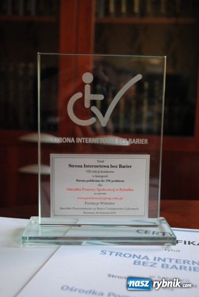 OPS w Rybniku z nagrodą w konkursie Strona Internetowa bez Barier