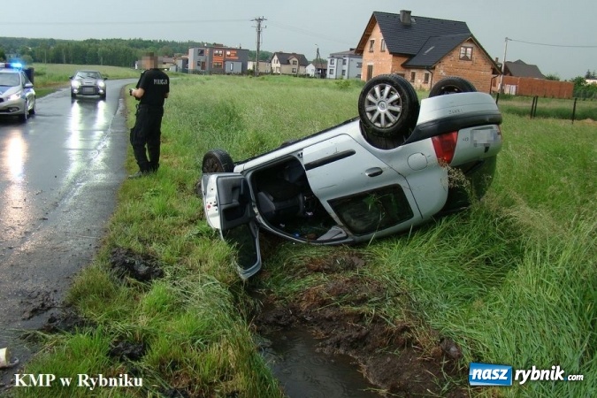 Jazda pijanej kobiety zakończona w przydrożnym rowie