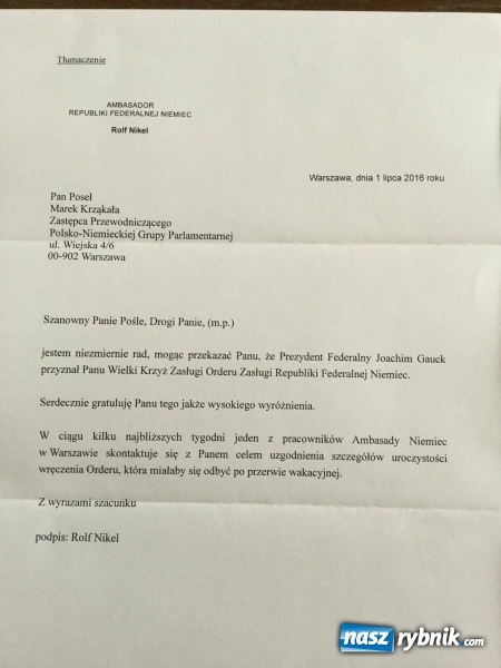 Krząkała odznaczony przez prezydenta Niemiec