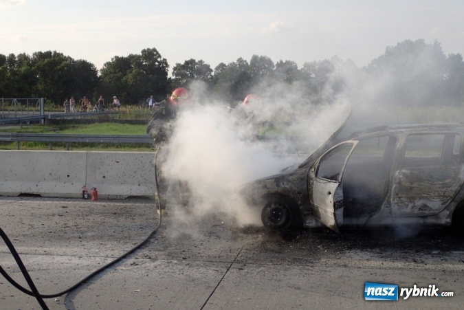 Samochód spłonął na autostradzie A1