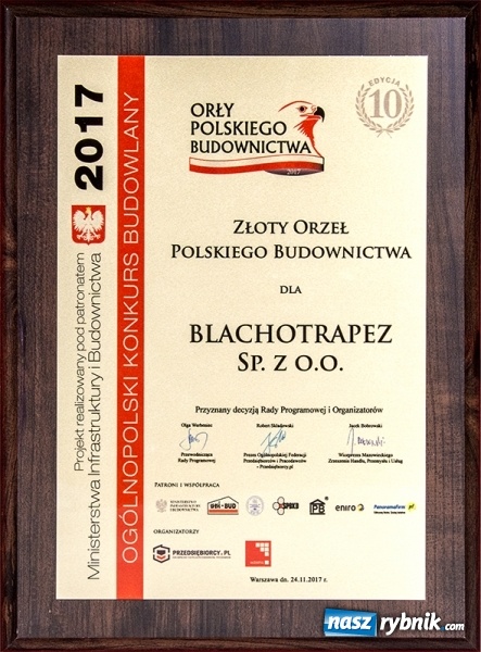 Blachotrapez nagrodzony Złotym Orłem Polskiego Budownictwa 2017